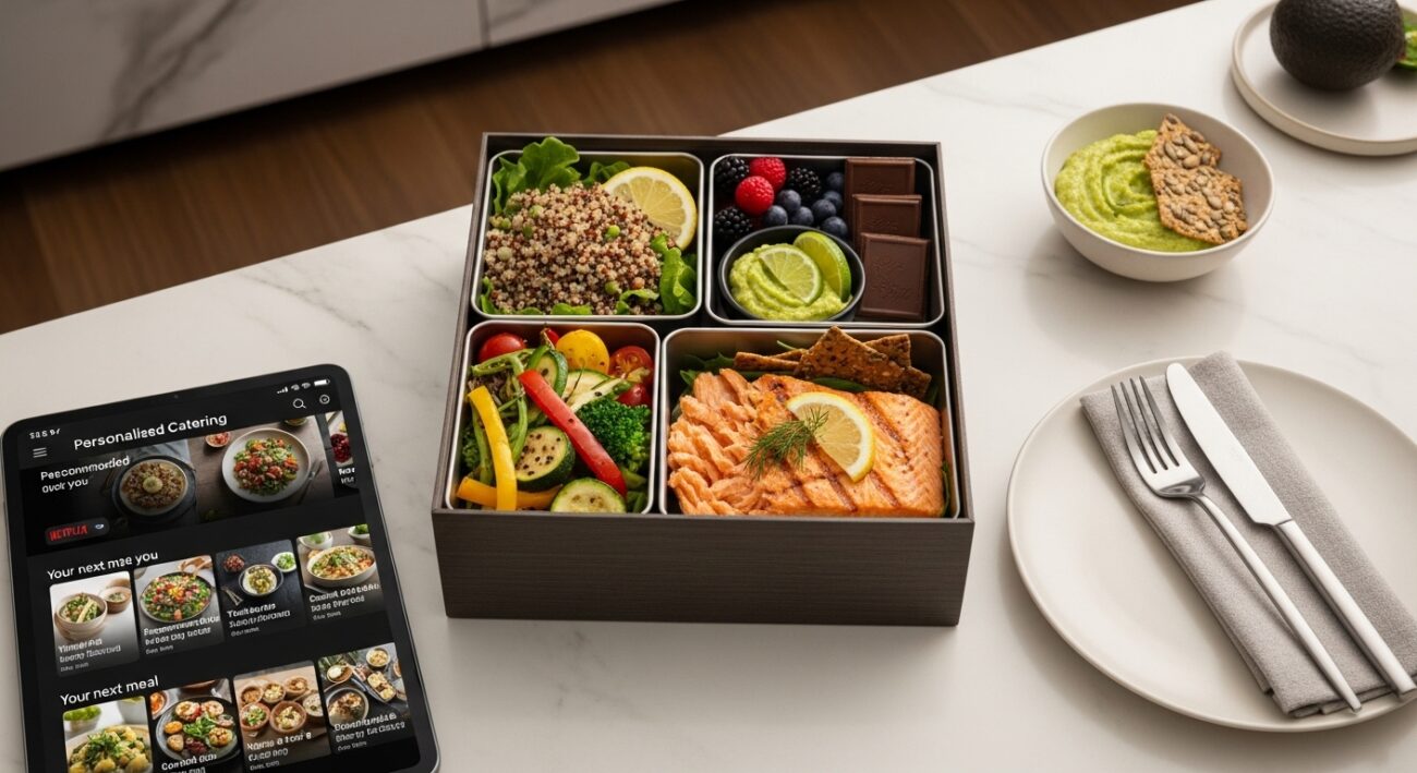 Wyobraź sobie, że otwierasz lodówkę, a tam czeka na Ciebie idealnie skrojony posiłek. Danie, które w 100% trafia w Twój gust, spełnia wszystkie Twoje potrzeby żywieniowe, a przy tym jest przygotowane z myślą o Twoim harmonogramie. Brzmi jak science fiction? A może… jak Netflix? Pytanie brzmi: czy catering może być personalizowany jak Netflix? Przyjrzyjmy się temu bliżej, bo przyszłość jedzenia już puka do naszych drzwi.